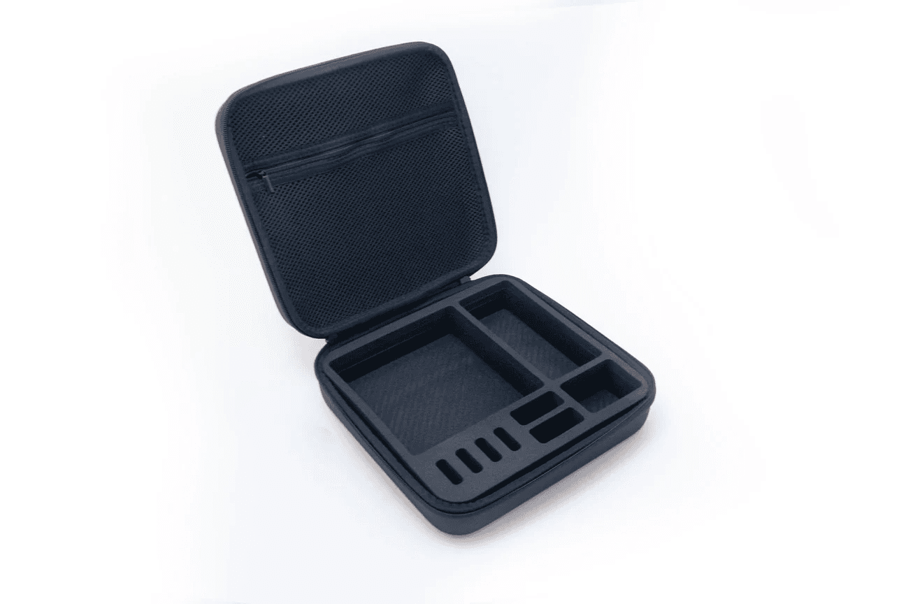 This case can hold all the contents of a single CoDrone EDU kit. It has foam on the inside to protect your drone, controller, batteries, and included accessories that come in an individual CoDrone EDU kit. There's also a zipper pocket at the top with room for your user guide, color cards, and additional accessories. The front cover includes a space where you can write your team's name, as well.